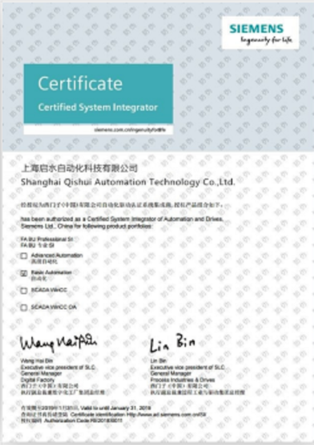 • 西门子授权证书